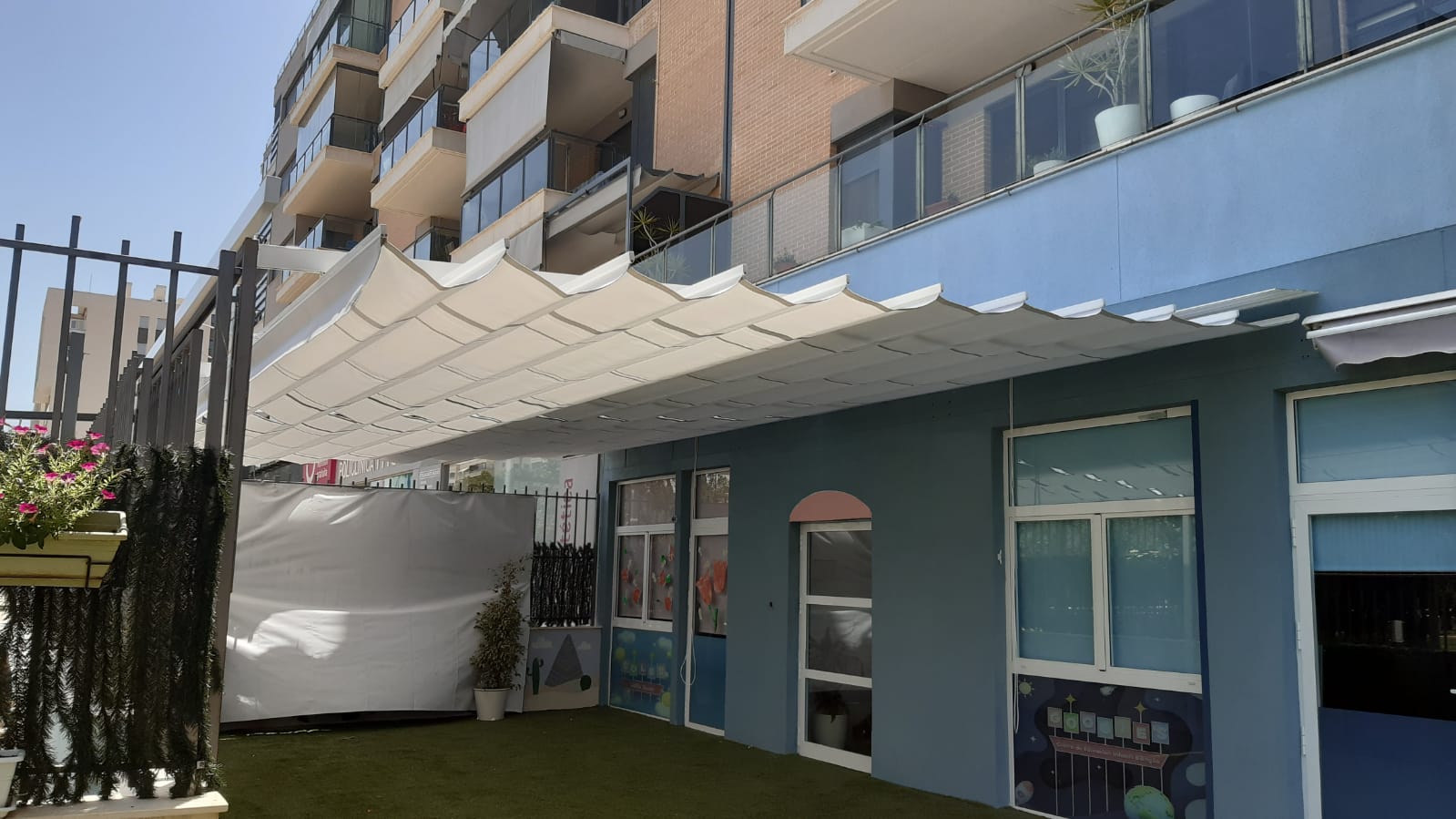 También contamos con toldos para terrazas y chalets, toldos y pérgolas a medida, en este caso, para espacios abiertos. De tal manera que embellezcan el lugar, al mismo tiempo que otorguen la funcionalidad deseada en materia de calidad y durabilidad. Por ejemplo, una pared irregular o en mal estado o la presencia de un canalón pueden modificar el tipo de toldo y el sistema de instalación. Incluso el color del toldo, por ejemplo, puede hacer que aumente su confort y bienestar. Los que son más oscuros desprenden frescor, mientras que los más claros atraen la calidez. Hasta el tipo de tela influyen en el consumo de su vivienda, que necesitará de menos climatización, y evidentemente no gastará tanto en mantener la temperatura deseada que le llega al espacio.